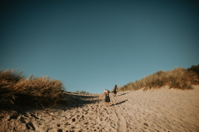 Pour commencer on s’est donné rendez-vous près de la côte afin de faire connaissance. Ensuite, nous avons choisi de faire quelques photos dans les dunes avec la plage en arrière plan. Pour terminer nous avons rejoint la plage pour profiter des derniers rayons du soleil. Ainsi les filles ont pu s’amuser à courir et sauter dans les bâches que la mer laisse en se retirant.